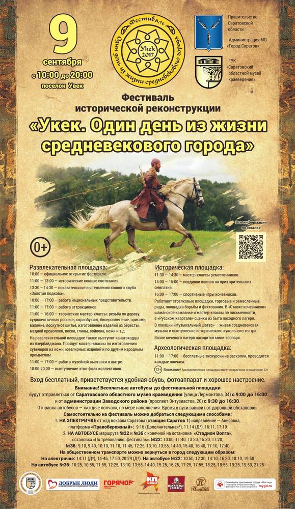При этом на второй площадке гости смогут осмотреть археологический раскоп 2017 года и с помощью специального сита для археологической просевки грунта обнаружить и взять на память бесплатные эксклюзивные сувениры - фрагменты средневековой посуды из города Укека. В свою очередь на третьей площадке откроется шатер, в котором будут выставлены экспонаты областного музея краеведения, посвященные Увекскому городищу.