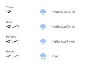 Портал Gismeteo прогнозирует преимущественно пасмурную погоду и температуру -3…-2 градуса, возможен снег. Ветер южный 12-13 м/с. Поздно вечером и ночью -2 градуса, возможен сильный снег.