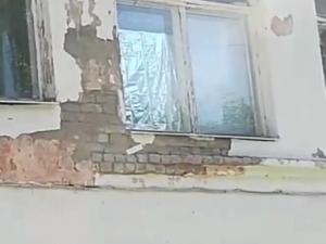 По его словам, из-за плохо проведенных работ кровля начала протекать, а вода проникать в щели между кирпичами и штукатуркой. После этого стали ветшать стены, потолки и фасад здания, которые сейчас «напоминают здания Донецка или Луганска после обстрелов».