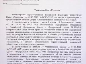 Кроме того, Хорова отметила, что одному из пациентов диспансера - А.П. Дурнову - уже вернули денежные средства, потраченные на оплату онкоконсилиума.