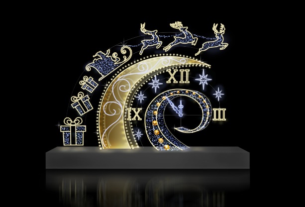 До 20 декабря исполнителю надлежит поставить 7 типов праздничных новогодних конструкций, в том числе арку в виде часов; полумесяц с циферблатом, оленями и санями; фигуры зайца, медведя, а также стилизованную подарочную коробку.