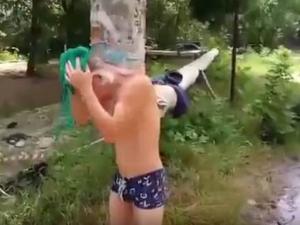 Молодой человек, который не выдержал коммунального беспредела и безответственности местных чиновников, принял душ под струей горячей воды, льющейся из поврежденной теплотрассы.