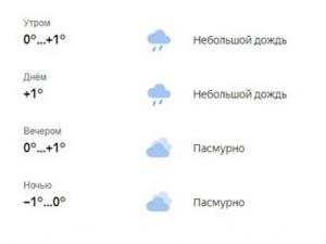 Портал Gismeteo прогнозирует днем преимущественно облачную погоду и температуру 0…+1 градус, возможен дождь. Ветер южный 3-5 м/с. Поздно вечером и ночью 0 градусов.