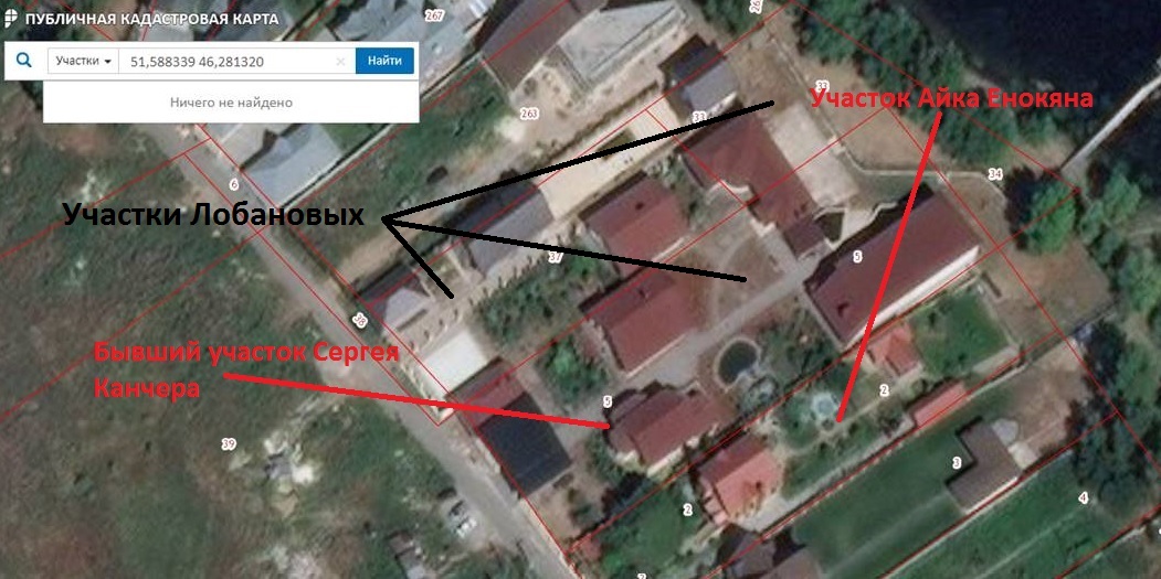 К ЖК «Лобановский» вплотную примыкает земельный участок, собственником которого является Айк Есаиевич Енокян, отец предпринимателя Армена Айковича Джуликяна, арестованного по делу Дмитрия Лобанова (его называют одним из держателей активов экс-главы района). Его право на указанный надел (на участке находятся жилой дом и хозпостройки, незарегистрированные как объекты недвижимости) было зафиксировано 19 мая 2016 года. Предыдущим владельцем участка (с 31 августа 2009 года), продавшим его Енокяну, был Евгений Гурьев. Скорее всего, именно эта земля и дом фигурируют во втором уголовном деле, возбужденном в отношении Дмитрия Лобанова, в качестве предоставленной ему взяткодателем «имущественной выгоды».