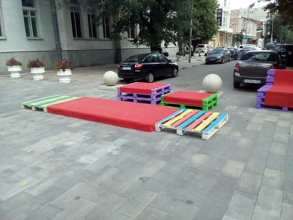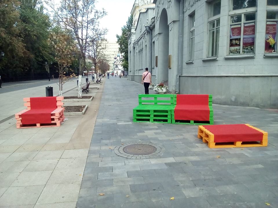 Появление на улице Волжской в Саратове малых архитектурных форм вызвало насмешки пользователей соцсетей. Установленные на пешеходной зоне лавочкообразные конструкции представляют собой деревянные поддоны, используемые, как правило, торговцами плодоовощной продукции, обратили внимание граждане.