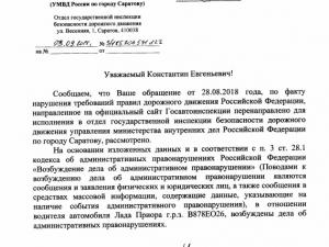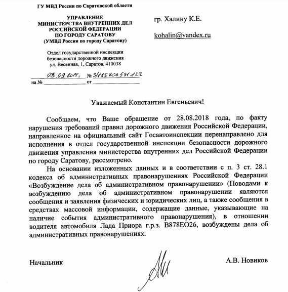 В полученном из ОГИБДД ответе говорится, что на основании изложенных в обращении данных «в отношении водителя Лада Приора г.р.з. В878ЕО26 возбуждены дела об административных правонарушениях».