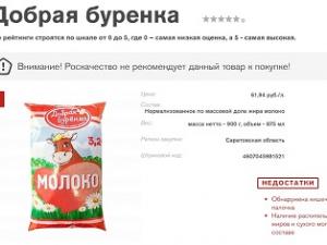 Российская автономная некоммерческая организация «Роскачество» выявила нарушения требований технического регламента Таможенного союза при производстве пастеризованного молока торговой марки «Добрая буренка» (ОАО «Саратовский молочный комбинат»).