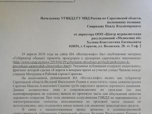 «На видеозаписи, размещенной ИА «Взгляд-инфо», видно, как губернатор Саратовской области Валерий Васильевич Радаев и заместитель главы администрации Саратова Максим Алексеевич Сиденко грубо нарушают правила дорожного движения. Данные должностные лица и сопровождающие их граждане (их нам идентифицировать не удалось) вышли на проезжую часть для обсуждения качества дорожного покрытия. При этом движение сотрудниками ГИБДД не перекрывалось, а светоотражающие элементы находящимися на проезжей части лицами не использовались, зато создавались явные помехи для движения транспортных средств», - говорилось в обращении «Медиаликс 64» в управление Госавтоинспекции.
