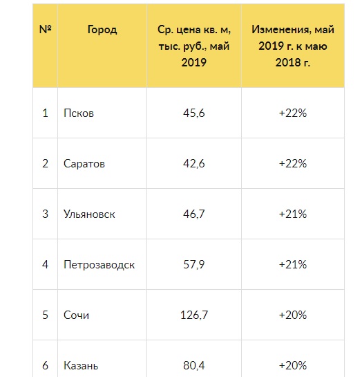 Лидером стал Псков, где с мая 2018 по мая 2019 года квадратный метр «первички» вырос в цене на 22 процента, до 45,6 тысячи рублей. Второе место занял Саратов (рост на 22 процента, до 42,6 тысячи рублей), а на третьем - Ульяновск (на 21 процент, до 46,7 тысячи рублей).