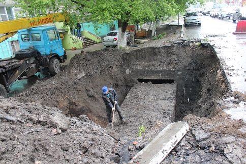 Земля в течение нескольких месяцев оседает и образовывается яма. Все это время место является аварийным. К зиме восстанавливают асфальт, ставят бордюрный камень. И все это длится до весны. А весной все начинается снова.