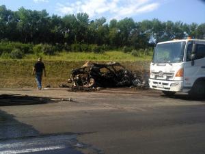 Погибли два человека, сидевших в легковушке; водитель грузовика был травмирован.