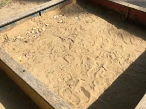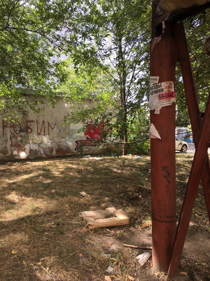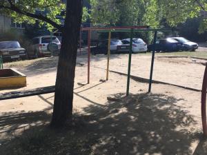 «Песочница, которая напоминает кошачий туалет, брусья разноуровневые, качели доисторические с занозами на сиденье и ржавая горка, которая ведет «вникуда»! Дети развлекают себя тем, что бьют пустые бутылки, оставленные вечными алкашами, об электробудку!