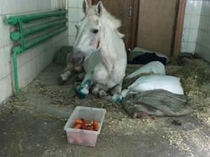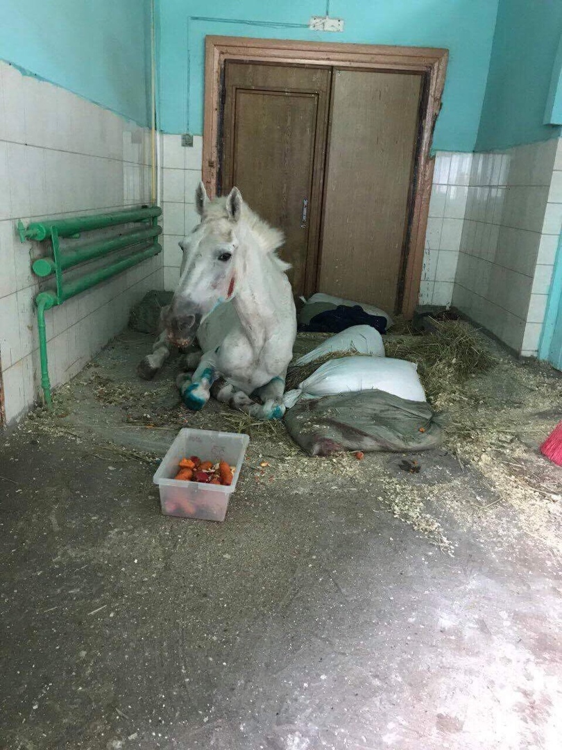 Студенты, выхаживающие лошадей, говорят, что полиция не снабдила животных ни едой, ни лекарствами. Практически отправила умирать. Выхаживают своими силами.