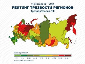Самым трезвым регионом стала Чечня, набравшая 12,78 балла; немного отстала от нее Ингушетия с 12,82 балла. Также в первую пятерку вошли Дагестан (14,18 балла), Карачаево-Черкесия и Кабардино-Балкария (20,02 и 20,7 балла).