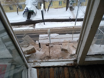 «В этом году нам чистили крышу ломами и пробили ее. В квартирах на пятом этаже, в одной из которых проживает 82-летняя женщина-ветеран труда, по стенам и потолку потекла вода. Работники УК разрушили еще и водосток, поэтому вода теперь стекает по одной из стен дома. Кроме того, с крыши стали падать кирпичи прямо на балконы.