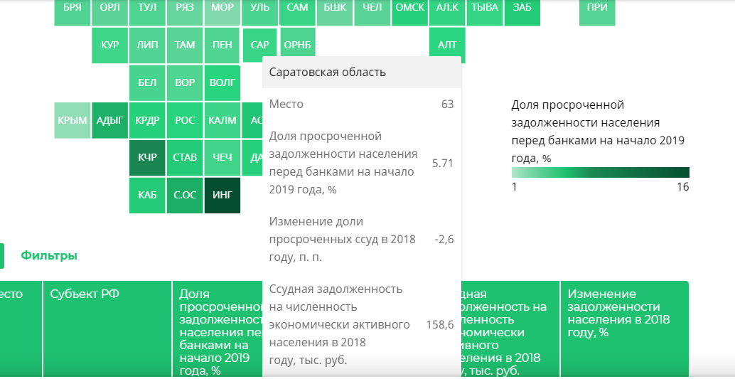 Саратовская область за год поднялась на 9 позиций и оказалась на 63-й строчке. По данным «РИА Рейтинг», доля просроченной задолженности жителей региона перед банками на 1 января текущего года составила 5,71 процента (по итогам 2017-го года - 8,29 процента).