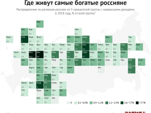 Вместе с тем в ряде регионов РФ - в Калмыкии, Ингушетии, Карачаево-Черкесии, Мордовии, Чувашии, Еврейской АО, Алтае и Тыве - вообще отсутствует прослойка богатейших людей.