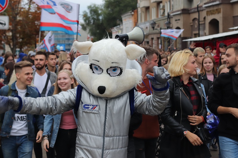 Праздничное шествие первокурсников по центральным улицам города стартовало по улице Волжской от улицы Чернышевского и отправилось на Театральную площадь, где и состоялась церемония посвящения в студенты. Первокурсники произнесли клятву своим учебным заведениям, каждый вуз представил презентацию.