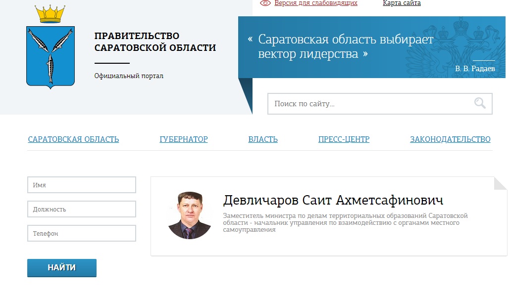 Подозревавшийся в коррупции экс-глава Лысогорского района Саратовской области Саит Девличаров назначен заместителем министра по делам территориальных образований губернии. В новую должность он вступил 27 ноября, сообщает сегодня, 2 декабря, ИА «Взгляд-инфо».
