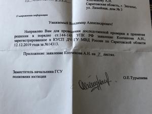 Три недели назад, 5 декабря, сотрудник ОУР МУ МВД «Энгельсское» Д.П. Чистобаев вынес постановление об отказе в возбуждении уголовного дела. Тогда Копченов обратился в Энгельсский райсуд с требованием признать его незаконным и необоснованным.