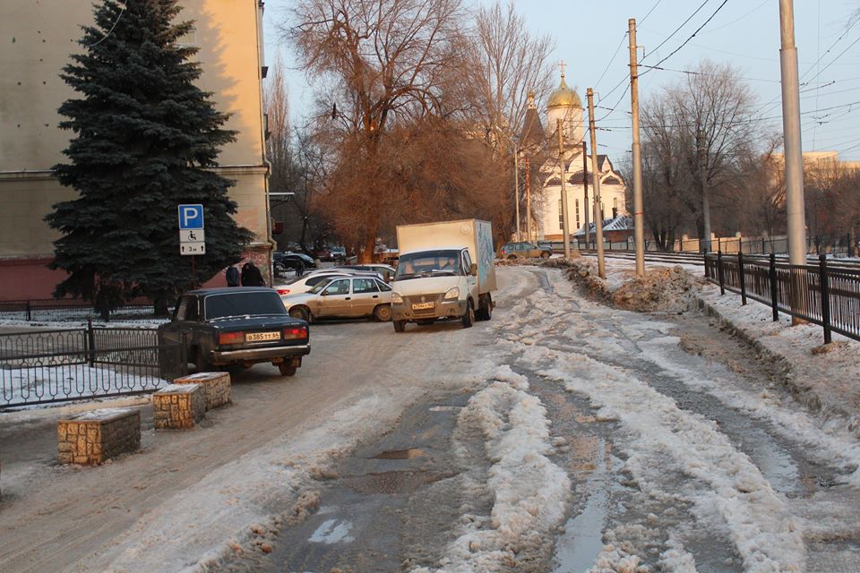 Эта жижа с трудно проходимой зоной находится (см. фото) рядом с Саратовским военным гарнизонным судом по адресу улица Международная, дом 8 «А». Недалеко, по адресу улица Международная, дом №1, расположена администрация Ленинского района города. Хотя на улице минус 5, но уже больше месяца по этой улице, на этом месте, течет ручьем водопроводная вода, превращая дорогу в жижу и каток. Я не знаю, какая тут произошла катастрофа, в результате которой уже целый месяц «текут» в Волгу деньги налогоплательщиков.