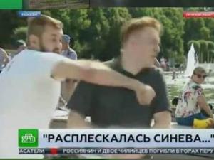 Корреспондент НТВ находился в прямом эфире и рассказывал ведущей «Чрезвычайного происшествия» Валерии Гавриловской и аудитории телеканала о том, как «войска дяди Васи» отмечают свой праздник (парк Горького является традиционным местом сбора столичных десантников). В этот момент к Никите Развозжаеву подошел пьяный мужчина плотного телосложения в футболке с надписью «Оплот» (общественная организация, созданная на Украине для противостояния местным националистам и активистам Евромайдана). Он начал выкрикивать в камеру нецензурные выражения, а после того, как журналист попросил его помолчать, ударил его в челюсть.