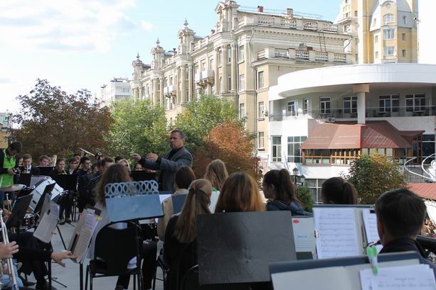 В воскресенье, 10 сентября, на балконе консерватории выступил оркестр духовых инструментов Саратовской государственной консерватории под руководством Александра Жигайло. Музыканты исполнили вальсы, польки, марши и популярную музыку.