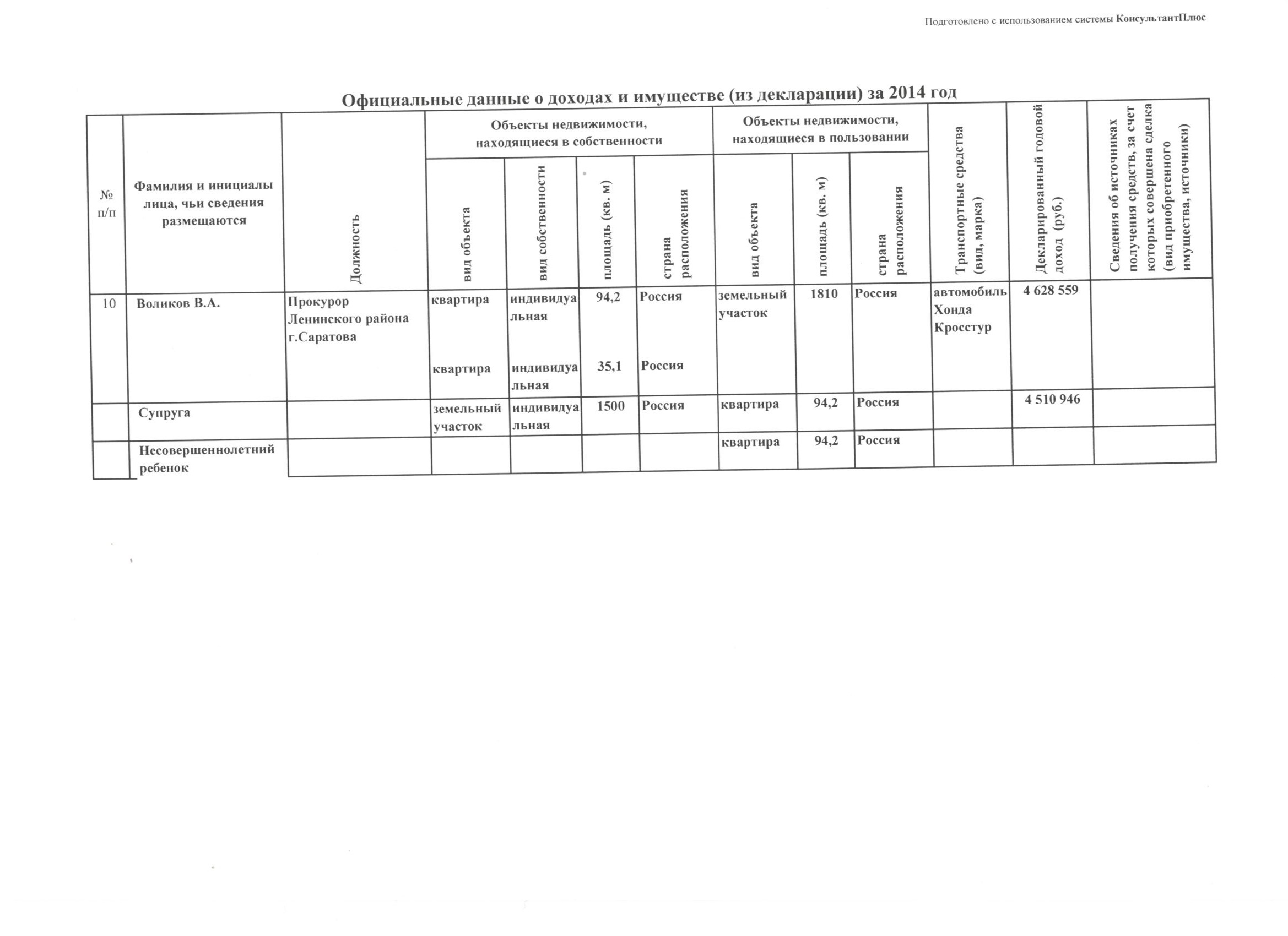 «Судя по официально опубликованной декларации, прокурор Воликов в 2014-2015 годах избавился от большей части своего недвижимого имущества, что объясняет более чем двукратный рост его доходов. В итоге к 2015 году у него в собственности остается лишь квартира площадью 94,2 квадратных метра.