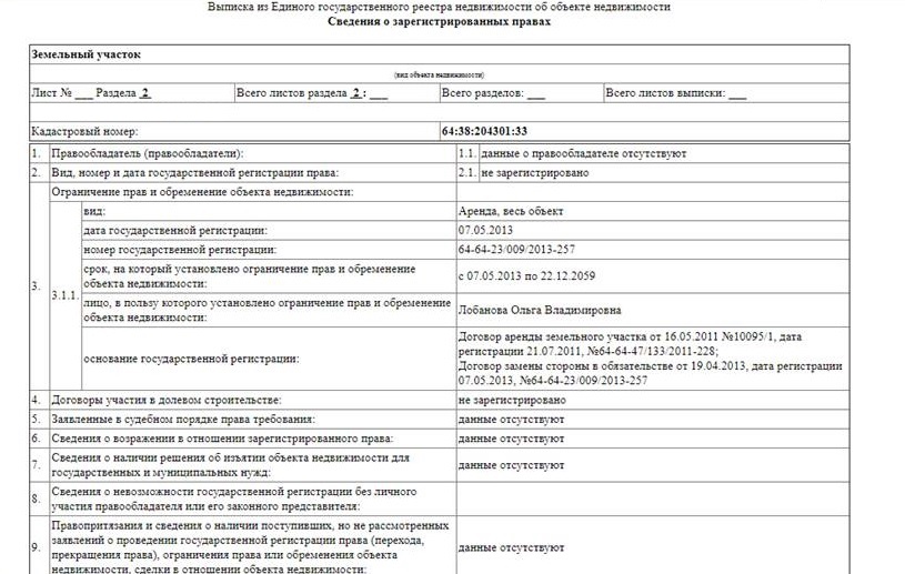 Участок 64:38:204301:33 площадью 1 тысяча 63 квадратных метров числится в аренде за Ольгой Лобановой (срок, на который установлено ограничение прав и обременение объекта недвижимости, - с 07 мая 2013 года по 22 декабря 2059 года).
