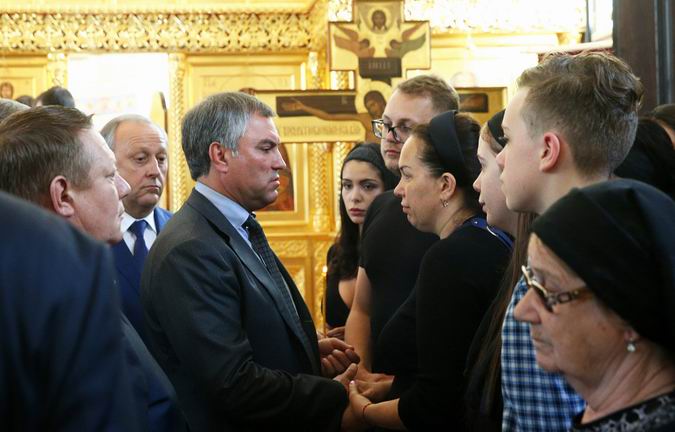Слова соболезнования и поддержки семье саратовского политика высказали спикер Госдумы Вячеслав Володин, митрополит Саратовский и Вольский Лонгин, а также другие пришедшие на скорбное мероприятия.