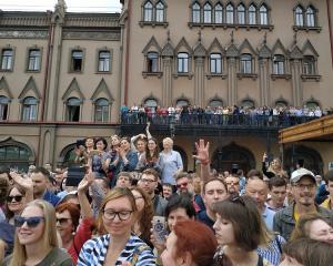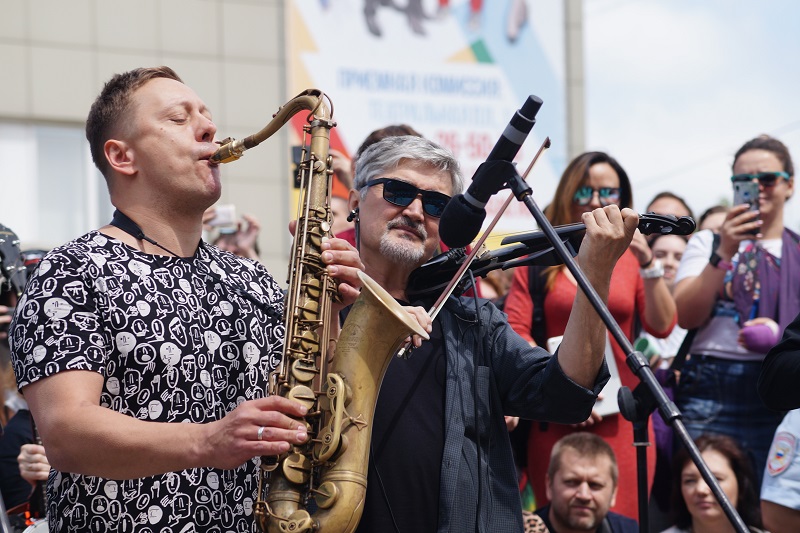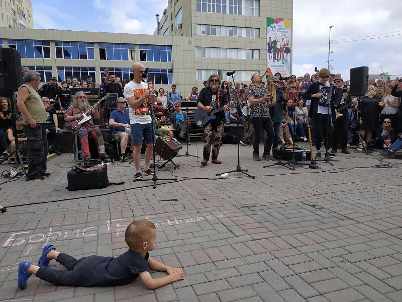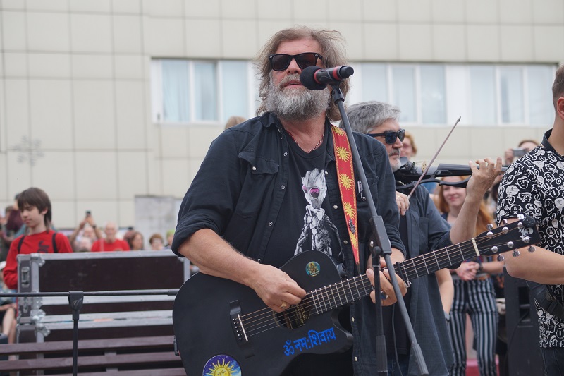 Сегодня, 27 мая, в Саратове на проспекте Кирова прошел короткий уличный концерт группы «Аквариум». Послушать корифеев рока собралось около двух тысяч саратовцев. Получасовая концертная программа завершилась песней «Стаканы», которую дружно подхватили собравшиеся.