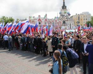 Сегодня, 12 июня, в Саратове на площади перед зданием консерватории прошел митинг, приуроченный ко Дню России. По оценкам полиции, в мероприятии приняло участие 9 тысяч человек.