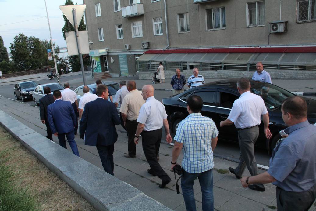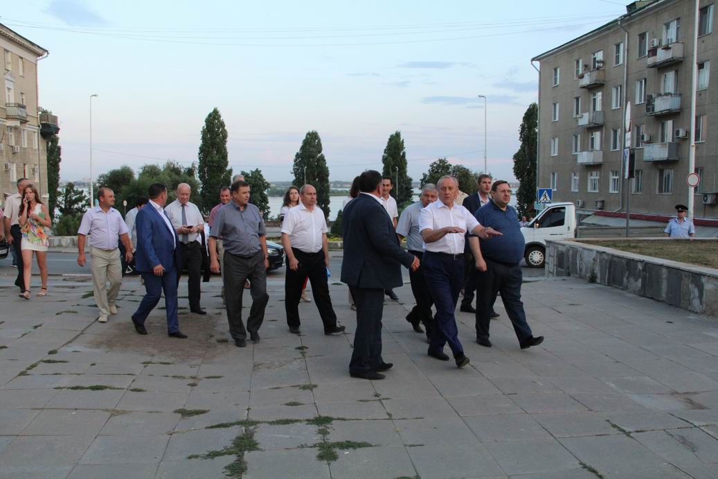 Губернатор Валерий Радаев осмотрел территорию центральной части Волжского района. 9 августа 2016 года он посетил сквер Первой учительницы, дворовую территорию дома № 25/1 по улице Лермонтова и, осмотрев ход реконструкции каскада фонтанов на спуске к Волге на улице Октябрьская, направился к набережной. Его сопровождали сити-менеджер Саратова Валерий Сараев, ректор Эконома Сергей Наумов и президент СГУ Леонид Коссович, депутаты гордумы от Волжского района Александр Янклович и Виктор Марков (все четверо участвуют в выборах в представительный орган МО «Город Саратов» в сентябре этого года) и другие лица.