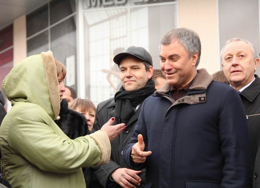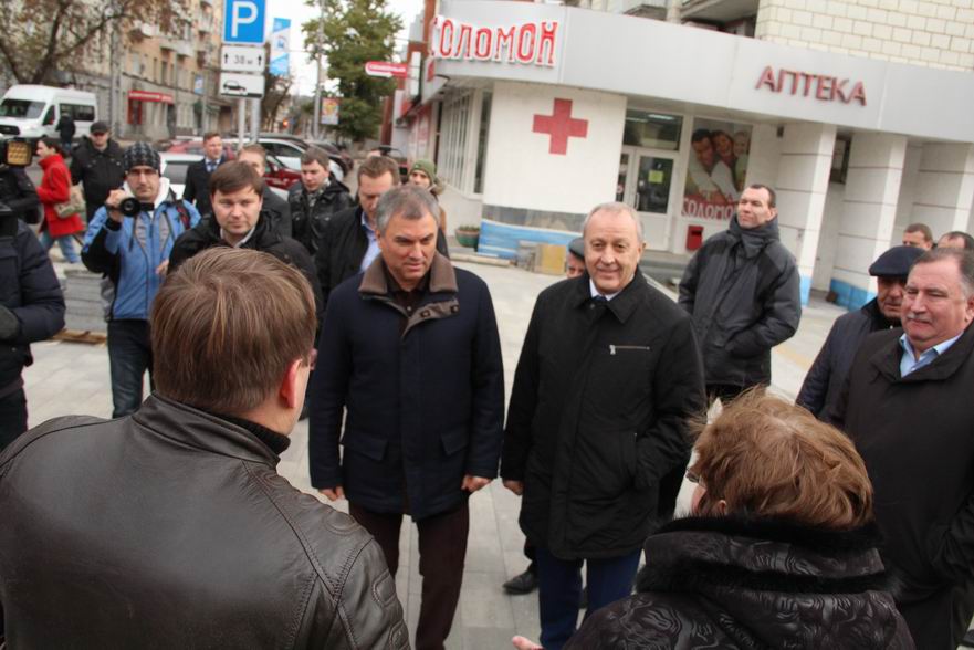 Сегодня, 29 октября, спикер Госдумы Вячеслав Володин осмотрел в Саратове ход работ по реконструкции пешеходной зоны на улице Волжская. Его сопровождали губернатор Валерий Радаев, глава администрации областного центра Валерий Сараев, а также другие чиновники и местные общественники. Председатель нижней палаты парламента осмотрел работу каскада фонтанов между улицами Чернышевского и Лермонтова. Здесь к нему подошла группа граждан; это были обманутые дольщики ЖСК «Утес-2000». Они поблагодарили Володина за содействие в реализации проектов по благоустройству города и попросили его помочь им, взяв на контроль ситуацию с достройкой их домов. Влиятельный земляк внимательно выслушал саратовцев и пообещал всяческое содействие, а главе региона поручил взять ситуацию под личный контроль.