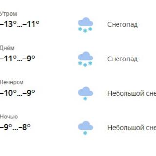 По информации регионального ГУ МЧС, основанной на данных местного Гидрометцентра, днем небольшой и умеренный снег, слабая метель. Ветер северо-западный, западный 6-11 м/с, местами порывы 12-17 м/с. Температура днем -7…-2 градусов.